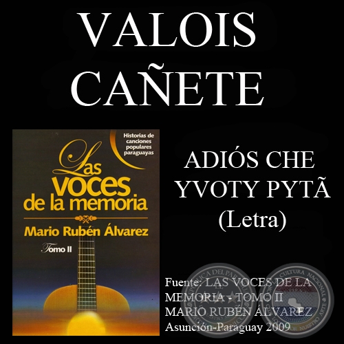 Esa obra pertenece a VALOIS CAÑETE, poeta y músico nacido en Acahay el 20 de noviembre de 1894. Según su hijo MARIANO CAÑETE, el que también es autor de ENGAÑO -probablemente dedicada a su madre, APOLONIA HONORATO, de ascendencia italiana-, era telegrafista en su comunidad. Los hábitos de hombre sedentario y metódico, sin embargo, no le cuadraban. Por eso, cambió la clave de Morse por los caminos de la bohemia y el arte.