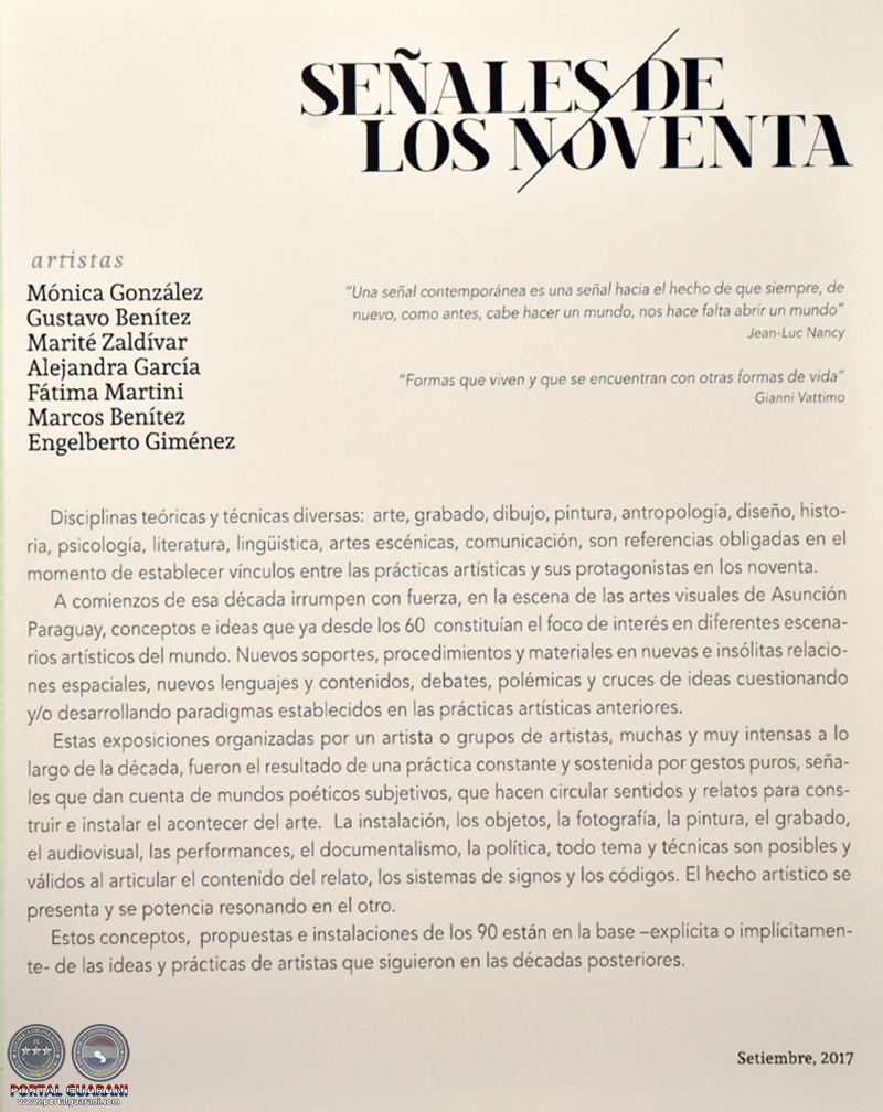 Asunción, Paraguay. Los artistas conceptuales de los años noventa en Paraguay realizarán una exposición retrospectiva de las obras que fueron gestadas en ese tiempo. Las propuestas son instalaciones con objetos cotidianos.