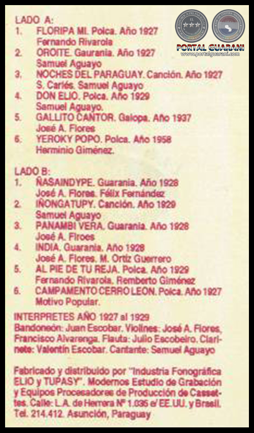 Violines: JOSÉ ASUNCIÓN FLORES, FRANCISCO ALVARENGA