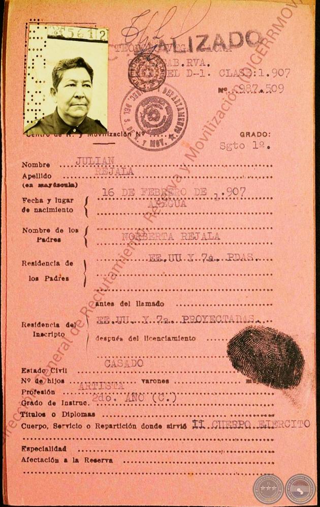 En los momentos cruciales que toda contienda bélica exige, Rejala trocó su guitarra por el fusil, a igual que los combatientes, sufrió la sed, la fatiga y marchó incólume bajo el tórrido sol, en la memorable batall de Irendagüe.