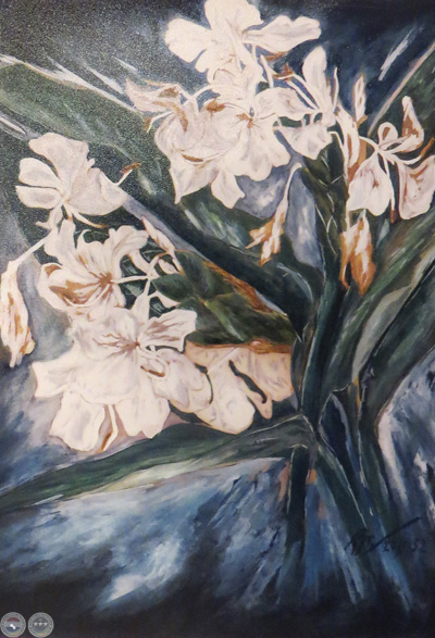 La exuberancia de los colores y lo enjundioso de nuestra flora están sintetizados en esta muestra, en la cual la autora aporta una candorosa y optimista visión de la vida con un marcado sello de espiritualidad.