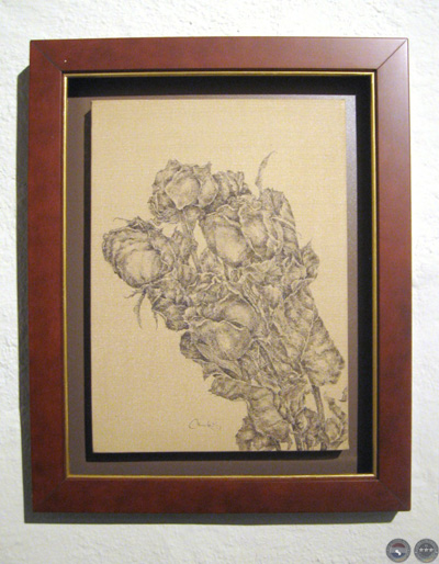 Ramo rosa seca, Plumilla y aguada sobre tela, 2009