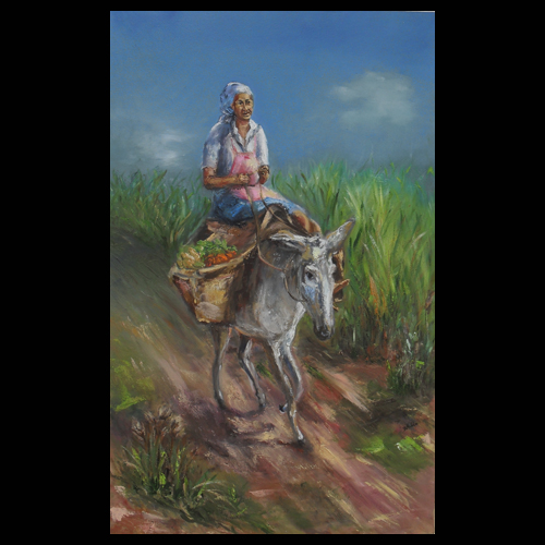 En las vendedoras de mercado hace hincapié en el rostro estoico y de mucha fuerza de la mujer típicamente paraguaya.