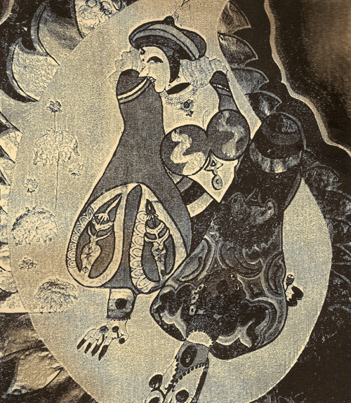 Bernardo Krasniansky presenta un conjunto de trabajos basados en el tema de la «estrella», cuyas interpretaciones plásticas van desde la pintura psicodélica y la pintura objetiva del actual cartel hasta ciertas realizaciones que poseen características más concretas, como la estrella cubierta de plumas, y que constituye, en nuestra opinión, uno de los trabajos más logrados del conjunto. Bernardo aprovecha el tema escogido para explotarlo en sus variadas connotaciones de belleza y en sus correlaciones con la realidad, y su propia interioridad. Dos artistas jóvenes, como dijimos, que pretenden hollar camino nuevo. Las influencias son visibles, pero eso no es novedad: todo artista que inicia su carrera sufre -felizmente- las inevitables influencias de su tiempo. Vislúmbrase también un cierto gusto por el humor, por el juego gratuito, en la obra de estos das jóvenes artistas. Ingrediente ese que va a la par, naturalmente, con su juventud y con su alegría de vivir, pero del cual esperamos sepan extraer lo que tiene de «serio» para no caer en la broma intranscendente.
