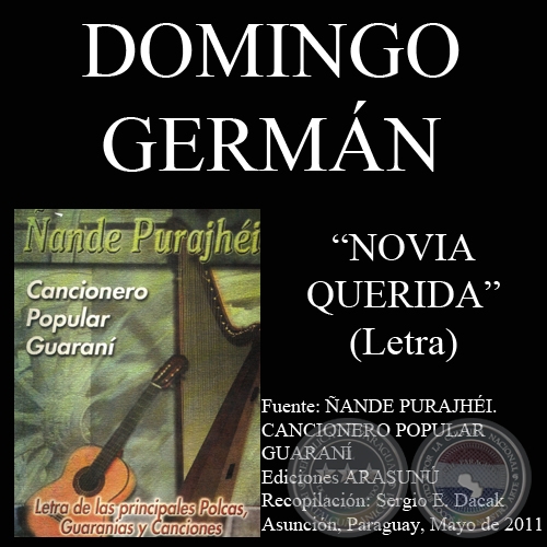 Letras: Nde ratypykua/ Che kamba resa jajai/ Canción a Villa Florida/ Recuerdos de Ypacaraí/ Mis noches sin ti/ Virginia/ Serenata/ Nde resa kuarahy’âme/ Novia querida/ Ne porâ che Paraguay/ Mi dicha lejana/ A mi pueblito Escobar/ Ángel de la sierra/ Chipera Luque/ Burrerita/ Kuña guapa/ Che renda alazán/ Recuerdos de ayer/ Reservista purahéi/ Che roga/ Cerro Corá/ Nde rendape aju/ Panambi verá/ Causa ne ñañá/ Tupâsy Ka'akupépe/ Flor de Pilar/ Acosta Ñu/ Minero sapukái/ Villarrica/ Tupâsy del campo/ Barcino kolí/ Asunción del Paraguay/ El arriero/ Josefina/ Peregrino trovador/ Mborayhu asy/ Soy de la Chacarina/ Apytávo che añomi/ Felicidades/ Mokôi güyra'í/ Vapor cué/ Noches del Paraguay/ Itapúa poty/ Tapyy ha’eño/ Jasy morotî/ Paloma blanca/ Buscándote/ Lejanía/ Renacerá el Paraguay/ Mi oración azul/ Así canta mi patria/ Lucerito Alba/ Galopera/ Bravo Paraguay/ Mitâkuñami/ Asunción/ Virgencita de Caacupé/ Che la reina/ Adiós che parahe kue/ Bajo el cielo del Paraguay/ Bahía Negra poty/ Ñemongetá okára/ Mi paisanita/ Mariposa parâmi/ Golondrina fugitiva/ Mi patria soñada/ María Escobar/ Florecita de mi cielo/ Oda pasional/ Alma vibrante/ Nendivénte/ Musiqueada jazmín guype/ Peregrino trovador/ Tardes asuncenas/ No me olvides/ India/ 6 de enero/ Palomita mensajera/ Muy cerca de ti/ Imposible, imposible/ Noches en el corazón/Por tu gracia angelical/ Ensueño de claro lunar/ Paraguaya rojhacjhú/ Máva ykére pa reimẽ/ Floripamí/ Che pyjharé mombyry/ La carreta/ Así canta mi patria/ Vergel luqueño/ Marineritos de mi patria/ Es tan lindo quererte/ Che maitei/ Saudade/ Oración a mi amada / Che pochyma nendivé.