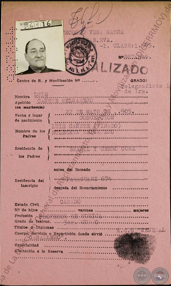 CAÑETE , LUIS : Compositor e intérprete musical. Nació en Concepción el 28 de mayo de 1905, hijo de Luis Cañete y Norberta Melgarejo. Inició sus estudios musicales con John Ashwell, por entonces director en la Banda Militar de Pilar.