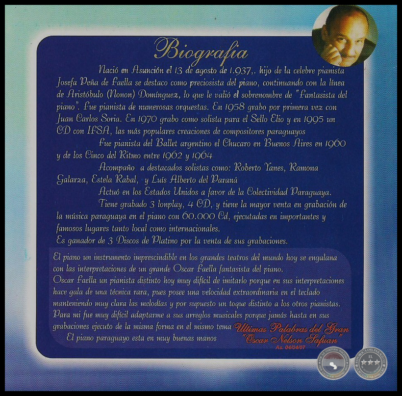 Grabación y orquestación dirigida por OSCAR NELSON SAFUÁN