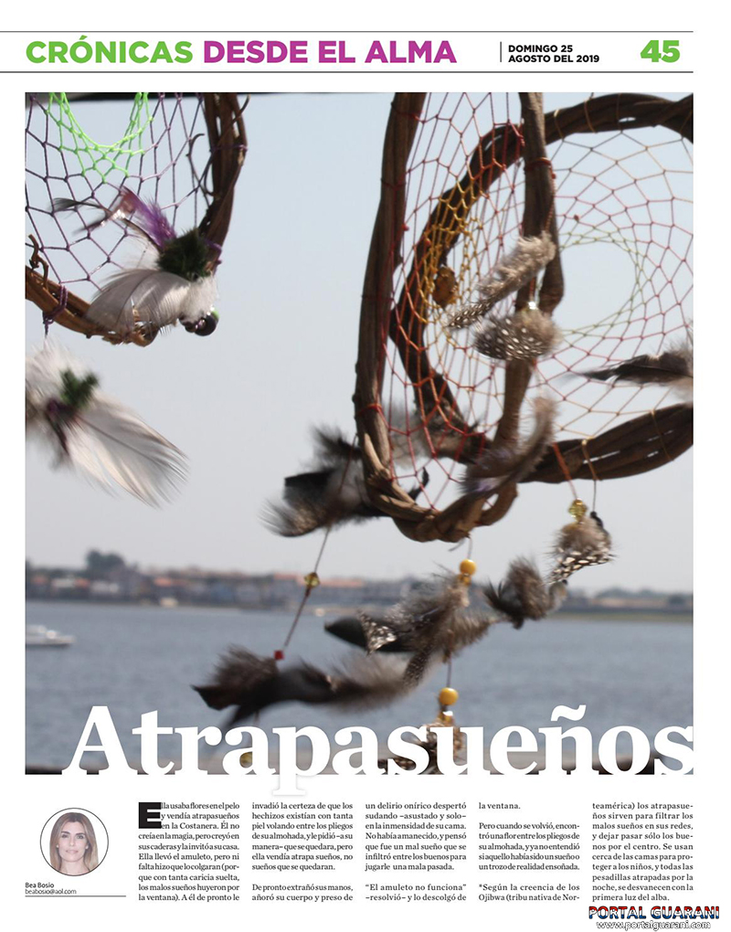 Ella usaba flores en el pelo y vendía atrapasueños en la Costanera. Él no creía en la magia, pero creyó en sus caderas y la invitó a su casa. Ella llevó el amuleto, pero ni falta hizo que lo colgaran (porque con tanta caricia suelta, los malos sueños huyeron por la ventana). A él de pronto le invadió la certeza de que los hechizos existían con tanta piel volando entre los pliegos de su almohada, y le pidió –a su manera– que se quedara, pero ella vendía atrapa sueños, no sueños que se quedaran.
