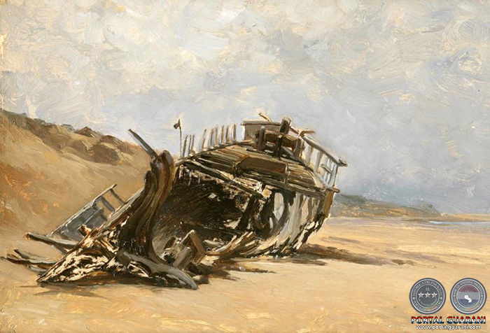 Carlos de Haes: Restos de un naufragio (1882), óleo sobre tabla.