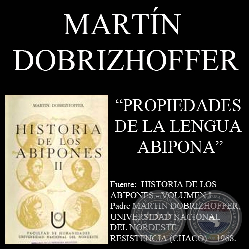 La lengua de los abipones presenta una dualidad, ya que por una parte se muestra falta y pobre de verbos, y por otra abunda en ellos. Después de lo que he expuesto podrás juzgar con seguridad que le faltan algunos vocablos y sobreabunda en otros. Carece de palabras que se utilizan en el habla cotidiana, como el verboser, que también falta en la lengua guaraní; tampoco tienen el verbotener, y voces que significanhombre, cuerpo, Dios, lugar, tiempo, nunca; siempre, en todo lugar, etc.
