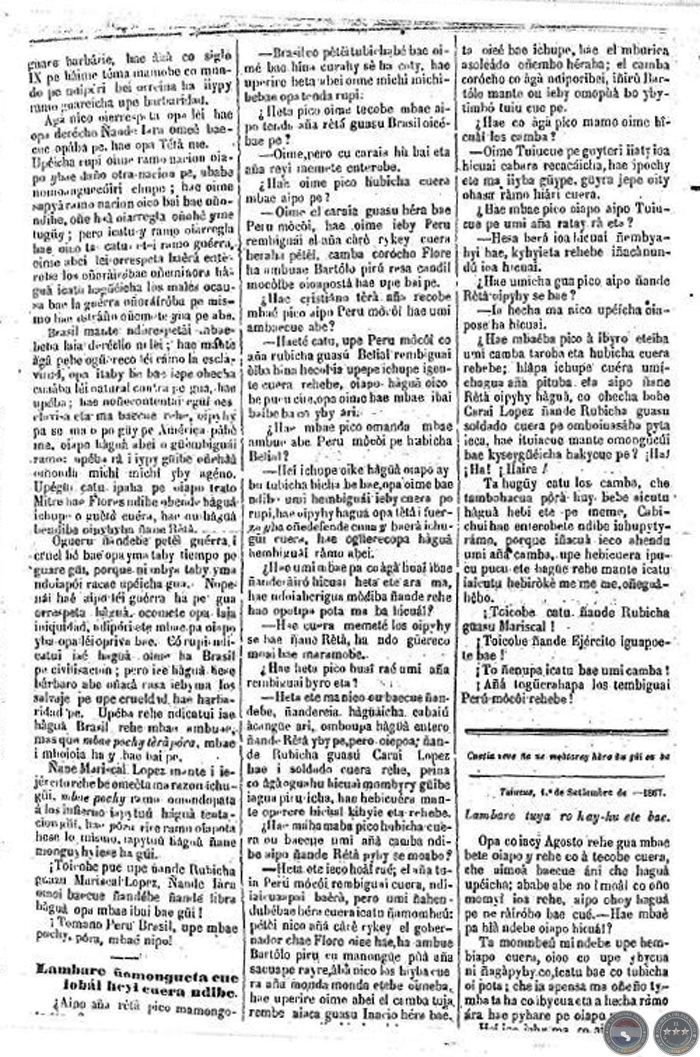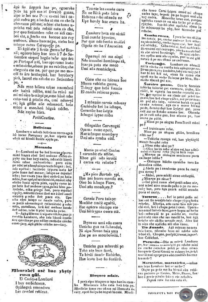 CACIQUE LAMBARE - AÑO 1 NÚMERO Nº 4 - ASUNCIÓN, 5 SETIEMBRE DE 1867