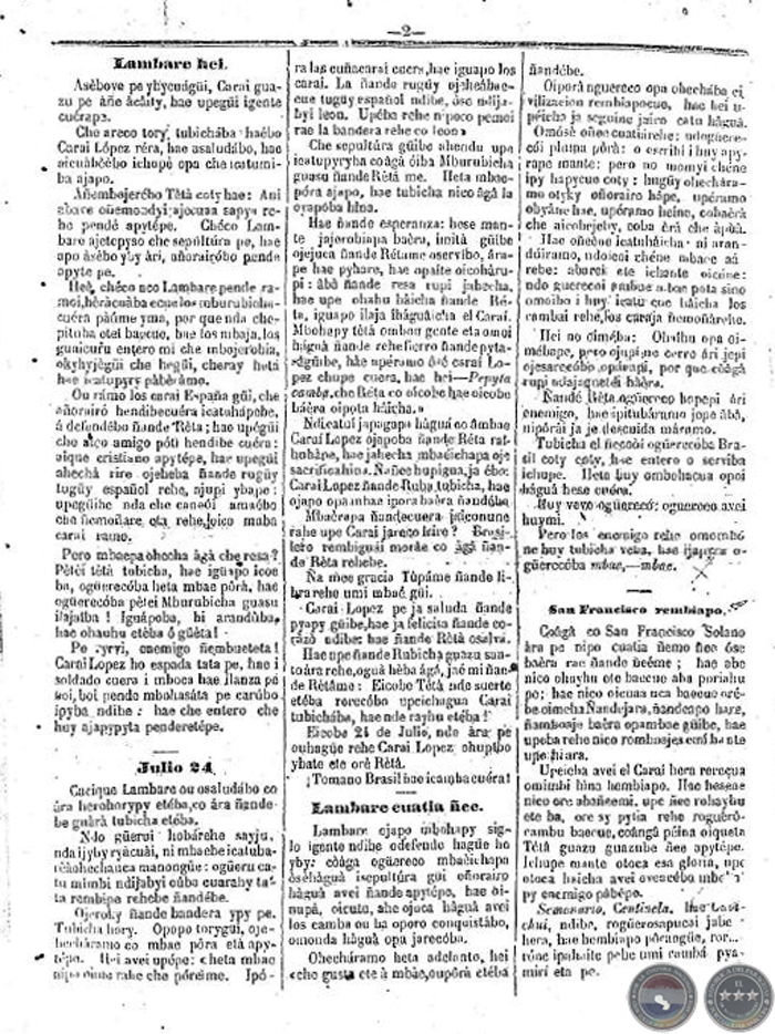 REVISTA DE LA GUERRA DE LA TRIPLE ALIANZA CACIQUE LAMBARE