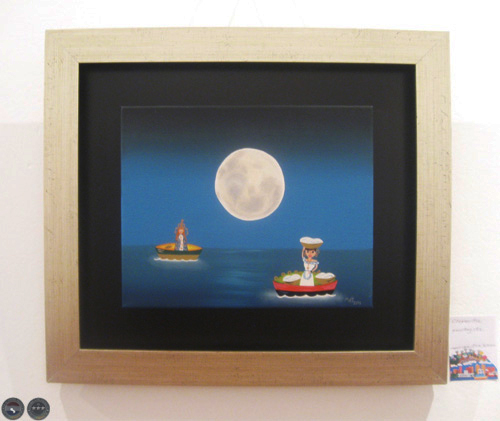 Hago bocetos si me viene alguna idea para después pintar, también hago bocetos si es una serie de cuadros para algo determinado. Luego empiezo pintando el degradé y después el resto hasta llegar a los detalles finales. Siempre tengo una idea de lo que quiero plasmar, me imagino como quedaría terminado, a veces se da como me imagine desde un principio y otras veces voy cambiando detalles por el camino.