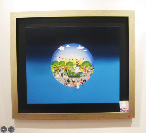 Una obra significativa para mí fue “Mensaje de Paz”, porque lo pinté después del atentado del 11 de setiembre. Al pintarlo quise trasmitir con el pesebre la importancia de la familia. El amarillo que usé de fondo es como una luz de esperanza y las personas con velitas recuerdan a sus seres queridos. En las ventanitas de las torres escribí la palabra vida y por último la paloma que lleva el mensaje de paz con los colores de nuestra bandera, así el mensaje es para todos. Esta obra es especialmente significativa para mí porque me produjo gran satisfacción, ya que ese año la utilizaron para las tarjetas de las Olimpiadas Especiales.