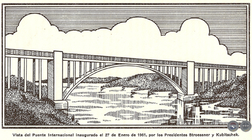 La construcción del Puente Internacional sobre el rio Paraná, que tan promisorias perspectivas ofrece a nuestro país, es la expresión más reciente y más brillante de sus propósitos de unir indisolublemente a los dos países -Paraguay y Brasil- en un mismo afán de progreso en un recíproco abrazo de hondo contenido fraterno y americanista.