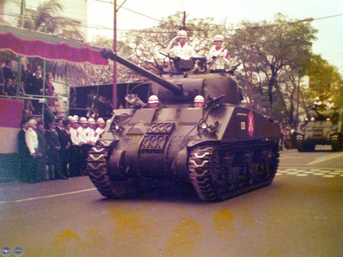 Tanques M4A Sherman del Ejército Paraguayo desfilando en la Avenida Mcal. López en los años 70