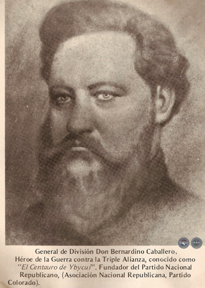 Sea mi palabra de especial recordación para el General Bernardino Caballero, soldado y estadista que recogió el legado inmortal del Mariscal Francisco Solano López, de quien fue amigo leal y valiente colaborador en todas las horas del destino, y que en la paz, tuvo a su cargo la honrosa misión de fundar la gloriosa Asociación Nacional Republicana, Partido Colorado, fuente inmarcesible del nacionalismo paraguayo y propulsor de la paz orgánica y constructiva que vive la República, bajo mi Gobierno.