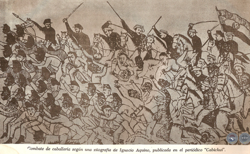 Combate de Caballería, Xilografía de Ignacio Aquino