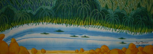 MEDINA, MARCELO : Maneja el color con insolencia y narra mundos insólitos (...), no vacila mucho en usar un repertorio fantástico y personal nutrido del cómic y el clip, el cuento infantil y el refinado mito indígena: la memoria antigua y el sueño más reciente.