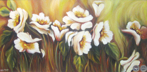 Flores de Diana Rossi, óleo sobre lienzo.