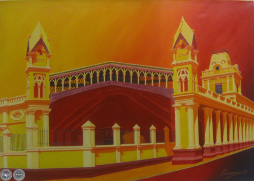 Estación Ferrocarril de Asunción, acrílico sobre lienzo, 70 x 50 cm.