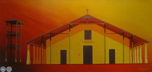Iglesia y Campanario de Yaguarón, acrílico sobre lienzo, 105 x 50 cm.