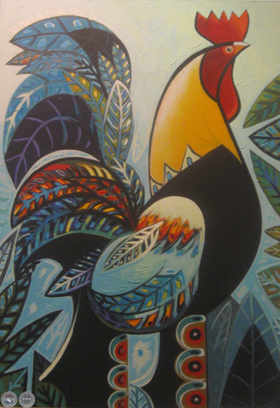 Serie El gallo, Óleo sobre lienzo.
