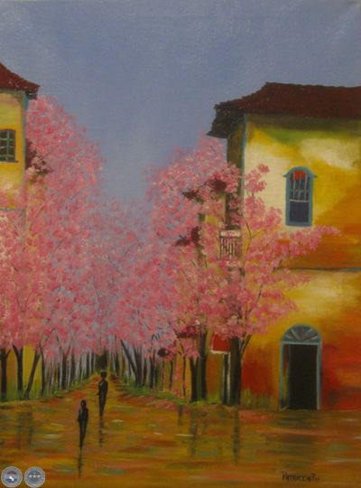 Lapachos en flor, óleo sobre lienzo.