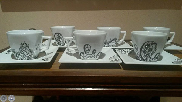 Tazas pintadas a mano - Dibujos de la artista, 2014