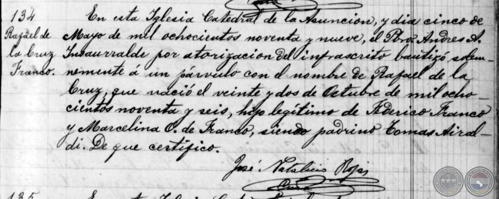 El matrimonio constituido por Don Federico Franco y Doña Marcelina Ojeda, vio acrecentado el hogar con el nacimiento de un varón a quien dieron por nombre: Rafael. Ocurría esto en Asunción el 22 de Octubre de 1896.
