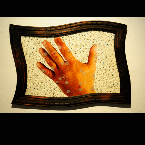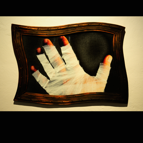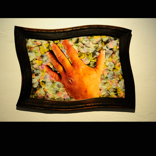 Las manos como herramienta del artista que mira el dorso entreabierto mientras cierra sus dedos entintados sobre el pincel, la gubia, el cuchillo o el lápiz. Con cada corte, trazo o pincelada, la herida late y su pulso imprime intensidades y pausas en el despliegue de la imagen.