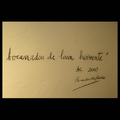 La herida infligida al poderío de la representación, el marco que capitula y se dobla: esas dos figuras constituían las premisas de esta obra de Ricardo Migliorisi. Pero en ese momento, buscando otros datos, apareció un texto que él mismo había escrito hacía unos años, a comienzos del 2003: