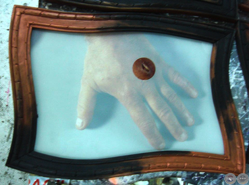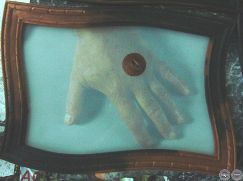 Lo importante ahora es la herida, la herida real que agrieta la mano; por eso una lupa aumenta sus bordes inflamados y el esmerilado del vidrio deja un claro sólo para mostrar el corte. Todo el resto es representación, montaje de escena, reflejos u opacidades: trampa del cristal que encubre, imagen devuelta por el espejo que cada cuadro levanta para tentar la mirada. Sólo la lesión es real: ante ella se cierran y entreabren los artificios del cuadro. Sólo la brecha que raja la piel abre un espacio en esa caja cerrada y lacrada. Sólo lo invisible (la sangre que aguarda, la carne violada, el mundo oscuro que enmascara la piel) puede rayar el límite y abrir una rendija, una herida, en la escena clausurada.