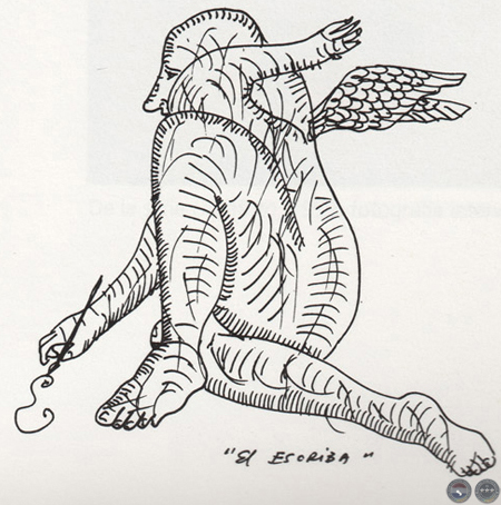 El escriba, 1997, dibujo a tinta sobre papel.