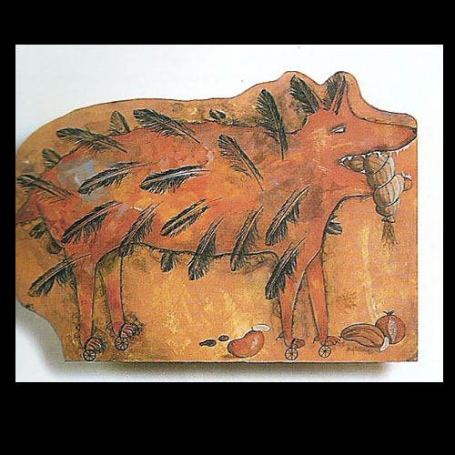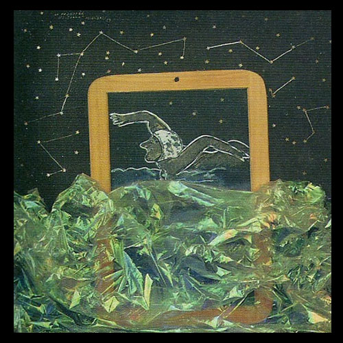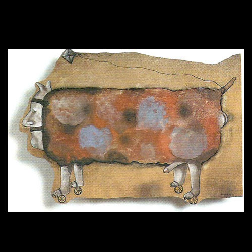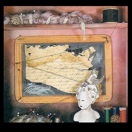 Ensamblaje, pintura y collage. 35 x 35 cms.