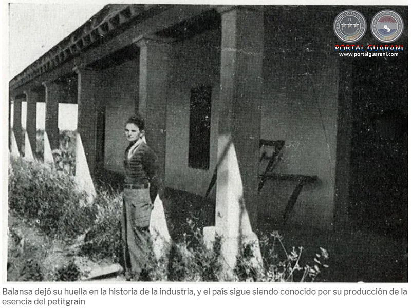 En Paraguay, ni la flor ni la hoja del naranjo agrio (apepú) se utilizaban con fines comerciales, salvo para su consumo como infusión o té. El fruto no es comestible debido a su sabor amargo. B. Balansa comenzó extrayendo el “neroli” (**), y fue mientras realizaba este experimento cuando tuvo la idea de destilar la hoja. Este fue el punto de partida de la industria del petit grain en Paraguay. El botánico se convirtió entonces en destilador y diseñó un alambique para producirlo en 1876, convirtiéndose así en el iniciador y promotor de la industria de destilación de petit grain (***) en la que otros inmigrantes intentarían abrirse camino en Paraguay.