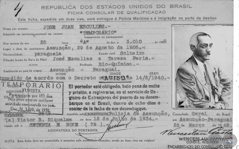 Hijo de José Esculies y Teresa Paris, españoles nació en Asunción, en 1906.