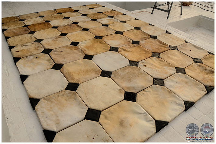 Bastidores octagonales revestidos con Piel de caballo, bastidores cuadrados revestidos con piel de caballo expuestos al fuego.