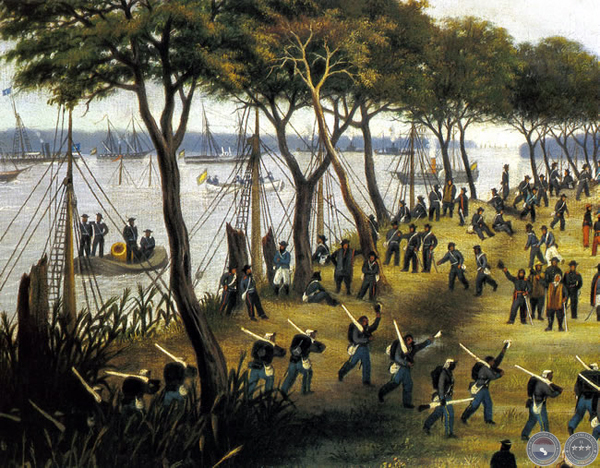 DESEMBARCO DEL EJÉRCITO ARGENTINO FRENTE A LAS TRINCHERAS DE CURUZÚ,