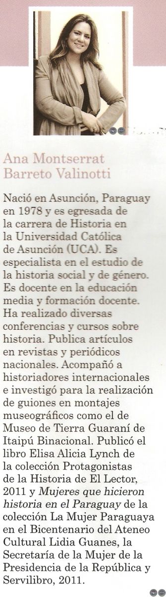 c) La notoria ausencia de trabajos especializados sobre temas de mujer. En la última gran publicación coordinada por Isabel Morant, Historia de las Mujeres en España y América Latina (2006), en cuatro tomos, con trabajos de más de un centenar de investigadores, Paraguay está, más que notoria, dolorosamente ausente.