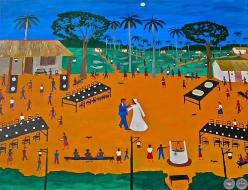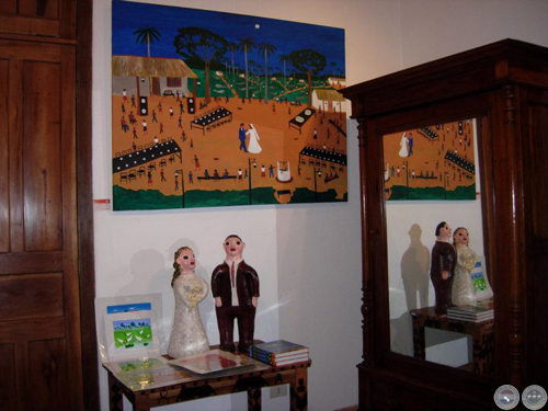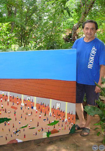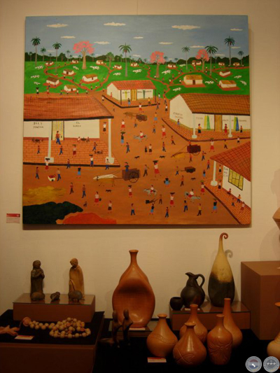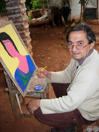 Jenaro expone su obra desde el 1974, cuando por primera vez hizo una muestra en el Colegio María Auxiliador de Asunción. En 1976 realizo una exposición individual de muchísimos cuadros -todos pintados sobre madera terciada-, con la benedición de Livio Abramo y de Miguel Fernández en el Centro de Estudios Brasileiro: Hasta ahora tengo 3 de los cuadros de esa ocasión. Desde entonces, realiza exposiciones todos los años. “Los cuadros actuales que voy a exponer en el CCDL son nuevos”, dice, mostrándome su última producción de gran tamaño: una cosecha de algodón, un casamiento koygua nocturna, mercados… son los temas costumbristas típicos de Jenaro.