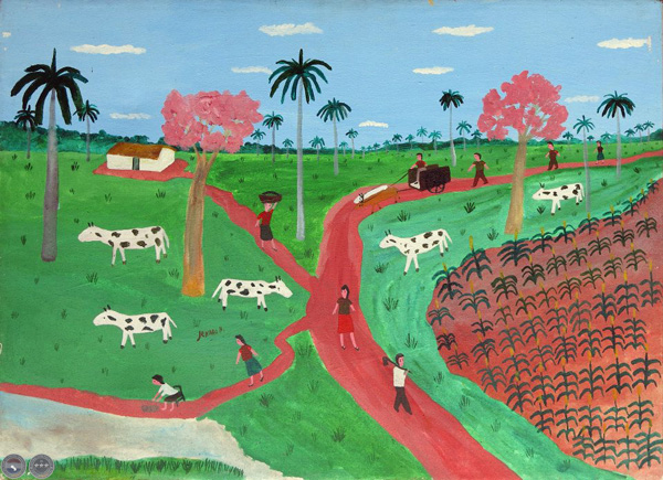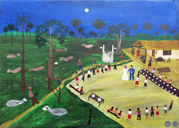 Acerca de esta muestra, el crítico Ticio Escobar, escribe lo siguiente en una parte del escrito que acompaña la exposición:“Esta muestra reúne artistas pertenecientes a dos escenarios. En el primero de ellos ocurre la modernidad propia de ciertos artistas urbanos o suburbanos cuyas sensibilidades se encuentran fraguadas en matrices populares, aunque sus obras lleguen a circular en las instituciones cultas del arte. Tales, los casos de Carlos Reyes (Mita’i Churi), Genaro Morales y Benjazmín Ocampos, cuyas obras se entroncan con el afán moderno siguiendo atajos propios y mezcla con naturalidad diferentes contenidos y repertorios lingüísticos de las vanguardias y la cultura de masas; sin mayores trámites, salta directamente desde sus referentes iconográficos barriales a conquistas formales y expresivas a las que los modernos ilustrados llegan a través de trabajosos y largos procesos.