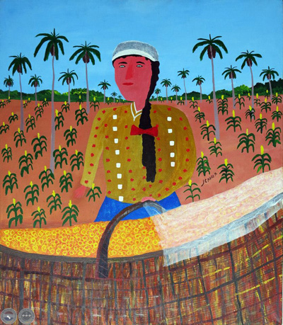 En el segundo escenario, artistas indígenas incorporan técnicas, imágenes y usos modernos ya sea para reponer sus menguadas iconografías, ya para oxigenarlas con refuerzos nuevos o, directamente, para explorar fuentes subsistenciales alternativas. En este ámbito resulta relevante la figura de Osvaldo Pitoé, que ha iniciado con notables resultados la práctica de la pintura sobre tablas de manera. Sus imágenes representan visiones del mundo, vivencias personales y comunitarias y anécdotas e historias que no han sido registradas por los propios indígenas. Sus obras no sólo poseen un indudable valor estético, sino que devienen valiosa información endoetnográfica y testimonio de diversos movimientos de reajuste que debe realizar la cultura indígena para sobrevivir y desarrollarse.”