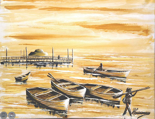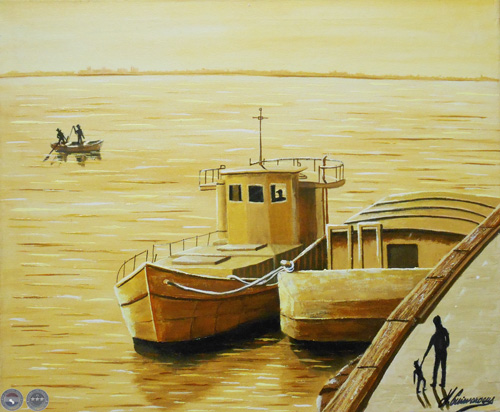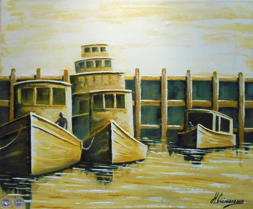 Paseo en el puerto, acrílico espatulado, 50 x 60 cm., 2014