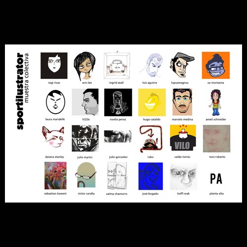 Exponen en Sportilustrator: Julio González, Satiná Chamorro, Sebastián Boesmi, Marcelo Medina, Laura Mandelik, Tony Roberto, Amelí Schneider, Luís Aguirre, Hugo Cataldo, Waldo Longo, VJ23x, Ingrid Seall, Daiana Stanley, Noelia Pérez, Kaffi Wak, Oz Montania, Ann Lee, Lupusmagnus, Víctor Candia, Rocko, José Bogado y Regina Rivas.