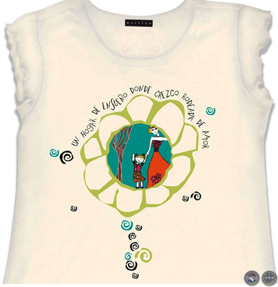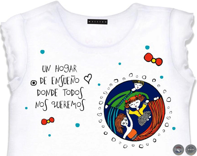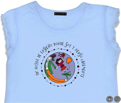 Podés elegir la leyenda que más te guste: “Un hogar de ensueño donde crezco rodeado de amor”/ “Donde vivo en contacto con la naturaleza”/ “Donde Dios nos enseña a compartir”/ “Donde soy y pienso libremente”/ “Donde juego y me divierto”. “Donde me acuesto y me levanto feliz”/ “Donde todos disfrutamos la vida”. Amelí explica: “Todas las prendas llevan impreso un mensaje. En la gráfica no hay computadoras, ni celulares, ni personajes famosos (algo normal para los chicos de hoy) porque busqué elementos comunes entre los dos mundos: bicicletas, globos, flores, muñecas. Eso vale tanto para un chico proveniente de un hogar privilegiado como para el que no está en esa condición”.