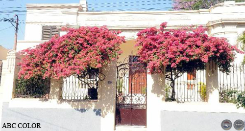 Santarritas descargan todo el color carmín sobre las verjas de este antiguo caserón