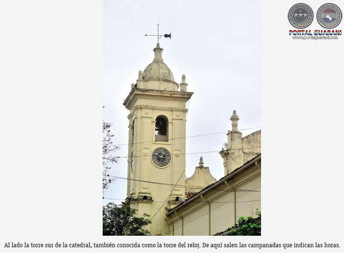 En su libro, Templos de Asunción, la historiadora Margarita Durán Estragó recoge la historia del reloj de la catedral que marca la hora oficial paraguaya. “El primer reloj fue instalado por el ingeniero Enrique Gowdin, ayudado por el alemán Juan Bukman. La primera campanada fue escuchada el 23 de abril de 1851 anunciando las 12:00 horas”.
