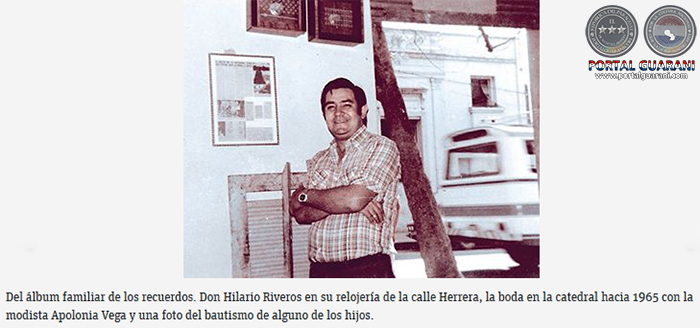 Rafael Marciano Riveros (48) nació al amparo de esas campanadas, en la Chacarita. Su padre, don Hilario Riveros, era de la zona del Club 3 de Febrero y su madre, Apolonia Vega, del sector del Oriental. Él tenía una modesta relojería “Riveros Hnos.” en la calle Herrera casi Paraguarí; ella era costurera, la modista del barrio, la que confeccionaba la ropa a las galoperas y vestía a sus hijas. Con el tiempo abrió una pequeña despensa a la que todos conocían como el almacén de Ña Chiquita.