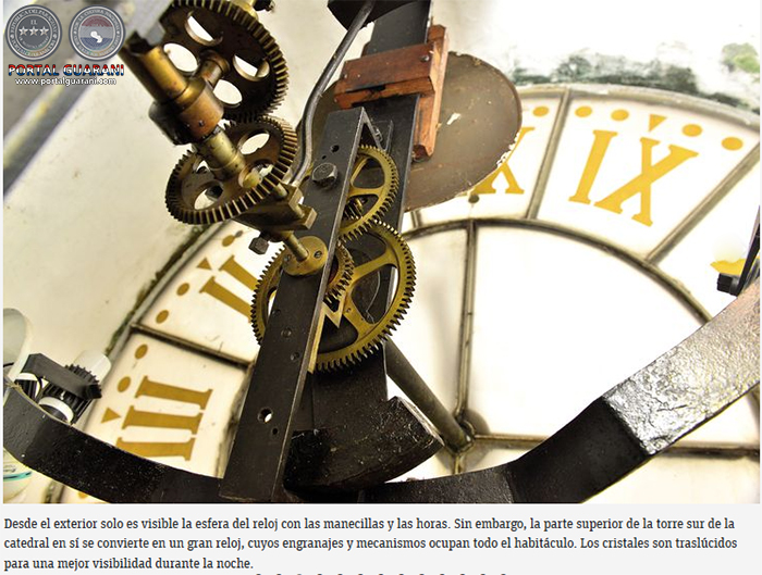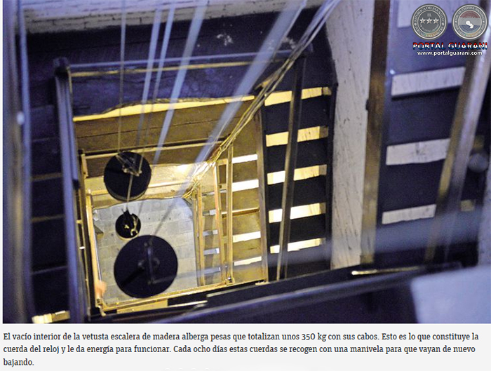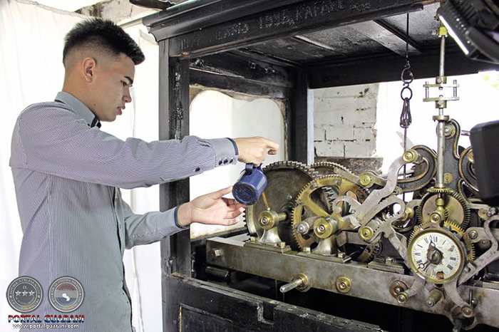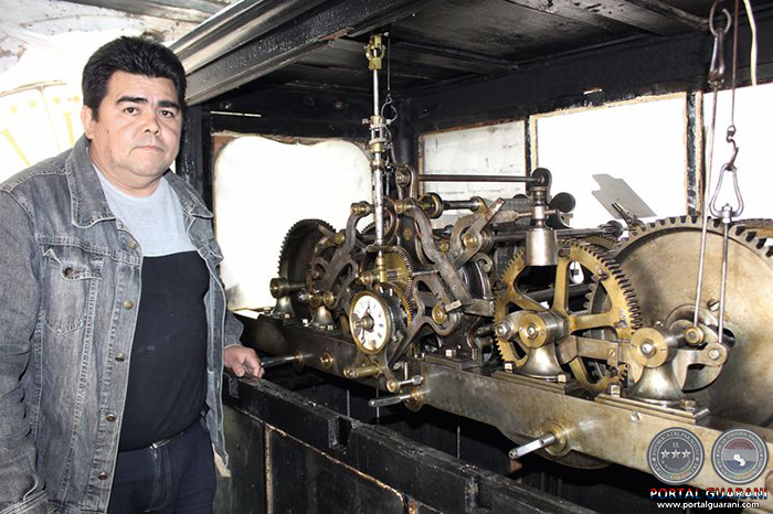 Con orgullo sigue expresando: “Me crie con los relojes y fui preparado por mi padre para reparar una joya tan antigua como esta. Este es un reloj big ben gigante que cada 15 min marca el paso del tiempo. Está aquí desde 1884 porque el anterior, que se instaló en 1851, fue llevado a San Lorenzo, según los historiadores”.